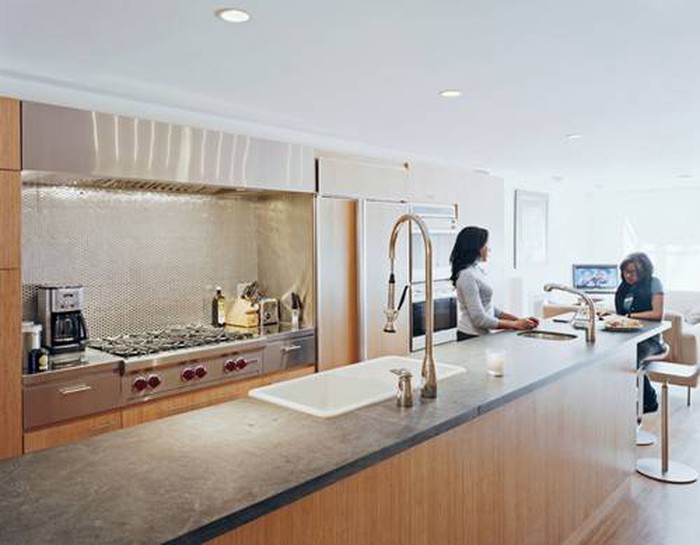 Trong khi đó, tại bờ biển New England, người nghệ sĩ đa tài này đã biến không gian bếp trở nên đầy sáng tạo và một thiên đường đáng sống khi gian bếp của ông có sự phối hợp giữa gỗ và đá, ông chia sẻ: “Một trong những thói quen yêu thích nhất của tôi là được vào bếp để rửa chén vì chính nơi đây khi nhìn ra cửa sổ như nhìn ra cuộc sống”.
